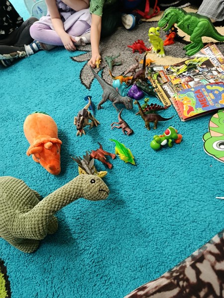 W naszej sali na chwilę zagościł prehistoryczny świat! Z okazji Dnia Dinozaura najmłodsze przedszkolaki uczestniczyły w szeregu inspirujących i radosnych aktywności.