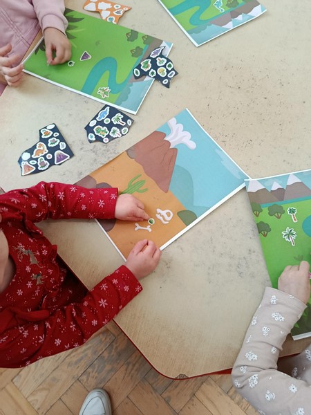 Nie zabrakło również ciekawostek z książki o dinozaurach, dostosowanych do wieku dzieci – rozmawialiśmy o tym, czym się żywiły i dlaczego wyginęły. Największe emocje wzbudziła jednak zabawa w paleontologa – mali badacze z ogromnym zaangażowaniem projektowali karty badaczy.