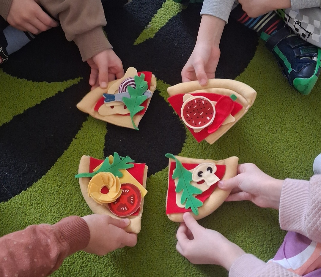 Dzień Pizzy obchodzimy 9-go lutego ale w tym roku z powodu niskiej frekwencji podczas ferii zabawy z pizzą przełożyliśmy na później. Połączyliśmy przyjemne z pożytecznym. Podczas lekcji angielskiego tworzyliśmy kolorowe pizze a potem projektowaliśmy swoje wymarzone. Pyyychota! :)