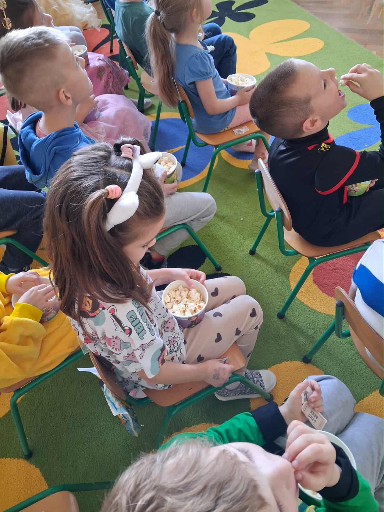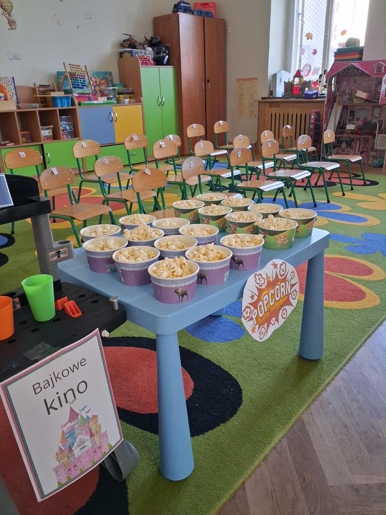 5-go listopada obchodzimy Dzień postaci z bajek. Tego roku nasza przedszkolna sala zamieniła się w prawdziwe kino. Dzieci dzień wcześniej przygotowały swoje osobiste "portfele" z "prawdziwymi" banknotami i monetami, wiedziały tylko, że następnego dnia będą im potrzebne. Gdy weszły do Bajkowego Kina, ozy im się świeciły. Każdy musiał wylosować miejsce czyli swoją rezerwację, "zapłacić" za bilet i popcorn. Przedszkolaki poczuły się jak dorośli:)