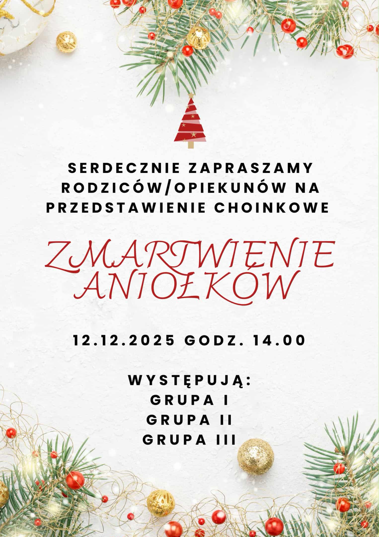 Nasze przedszkolaki serdecznie zapraszają na świąteczne przedstawienie w ich wykonaniu.