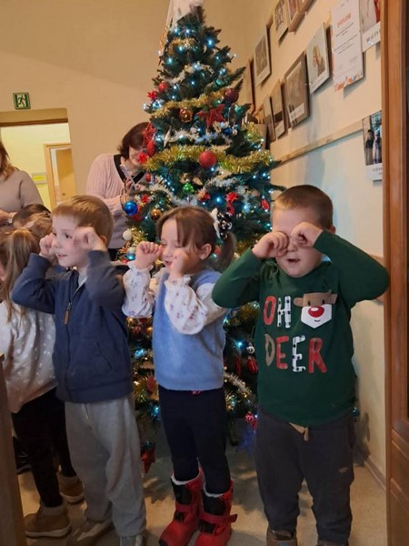 W przedświątecznej, pełnej ciepła atmosferze dzieci wspólnie z wychowawcami przygotowały świąteczną choinkę dla Seniorów z Domu Dziennego Pobytu „Na Maja”. Mali pomocnicy z wielkim zaangażowaniem przystrajali drzewko ozdobami, wkładając w nie serce, uśmiech i dziecięcą radość. Spotkanie stało się piękną okazją do kultywowania tradycji, budowania więzi międzypokoleniowych oraz okazywania szacunku i życzliwości osobom starszym. Wspólnie spędzony czas, rozmowy i serdeczne spojrzenia sprawiły, że świąteczna magia stała się czymś realnym i niezwykle wzruszającym. Dziękujemy za ciepłe przyjęcie i możliwość wspólnego tworzenia bożonarodzeniowego nastroju. Mamy nadzieję, że przystrojona choinka przyniesie Seniorom wiele radości i otuli ich atmosferą nadchodzących świąt.