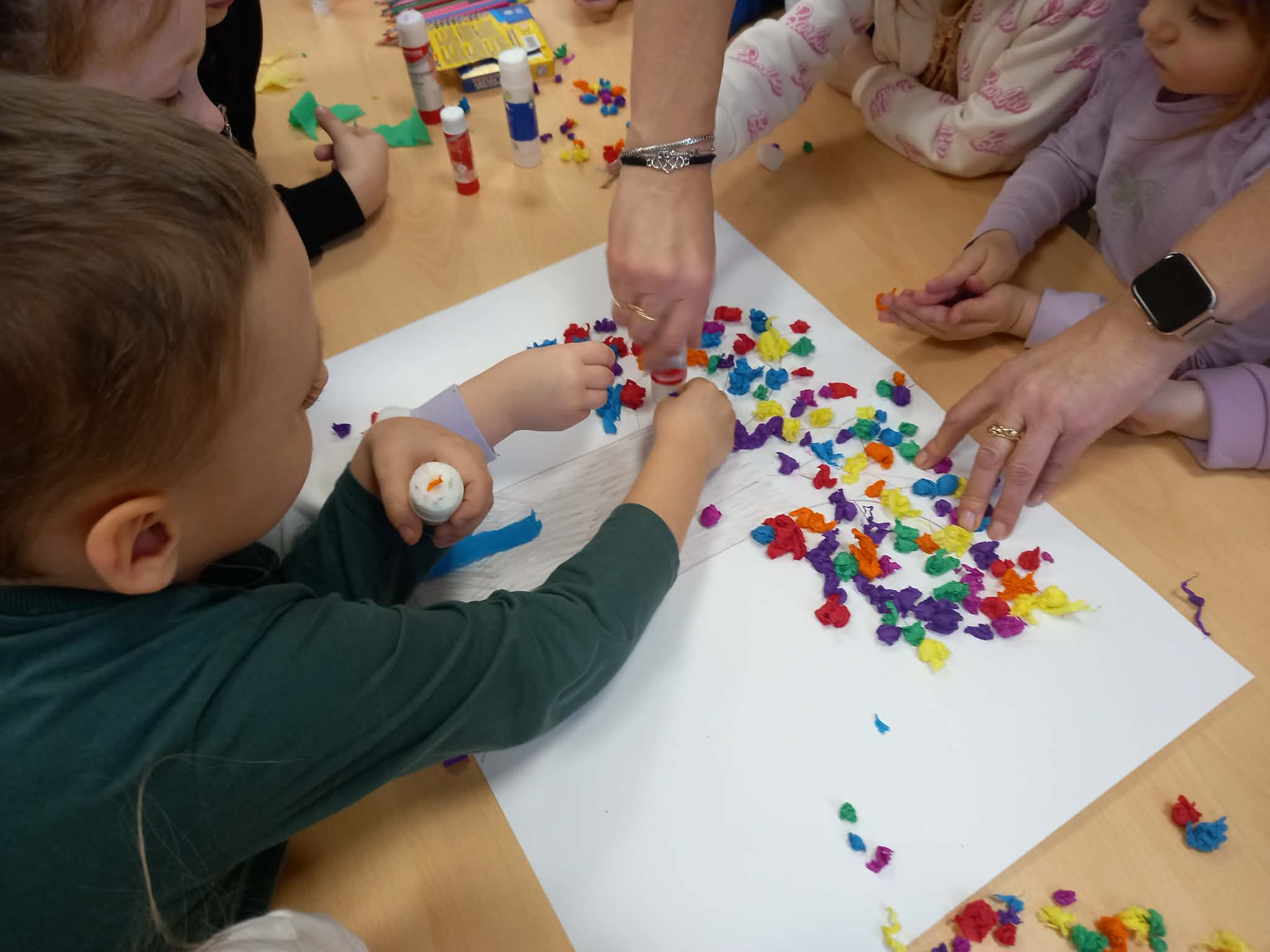 Podczas spotkania dzieci miały okazję poznać pracę bibliotekarza, zasady korzystania z biblioteki oraz sposób wypożyczania książek. Pani bibliotekarka zaprezentowała dzieciom różnorodne książki przeznaczone dla najmłodszych czytelników oraz przeczytała opowiadanie o przygotowaniach do wiosennego święta. Przedszkolaki z dużym zainteresowaniem słuchały czytanego tekstu, a następnie brały udział w rozmowie na temat jego treści.