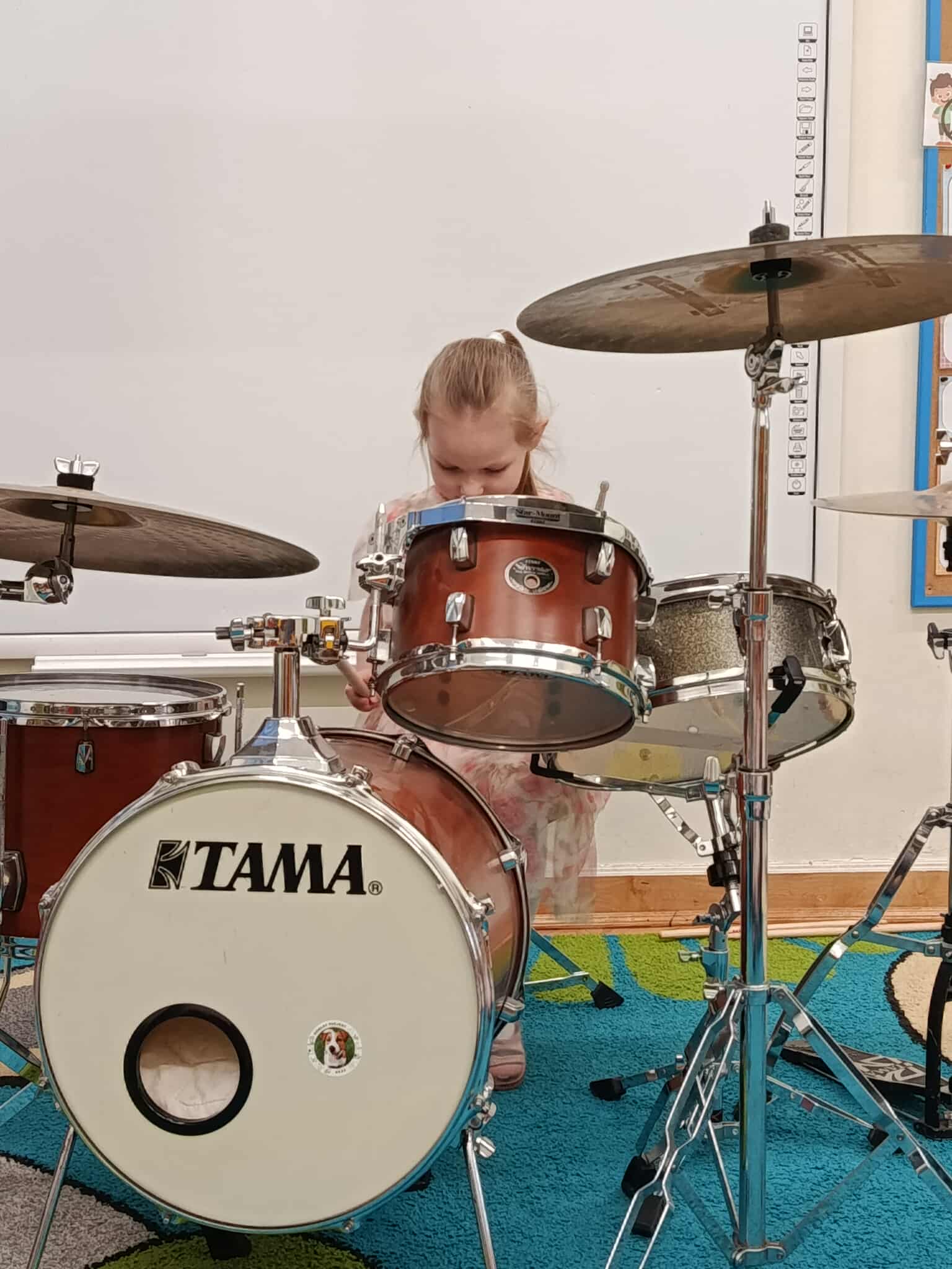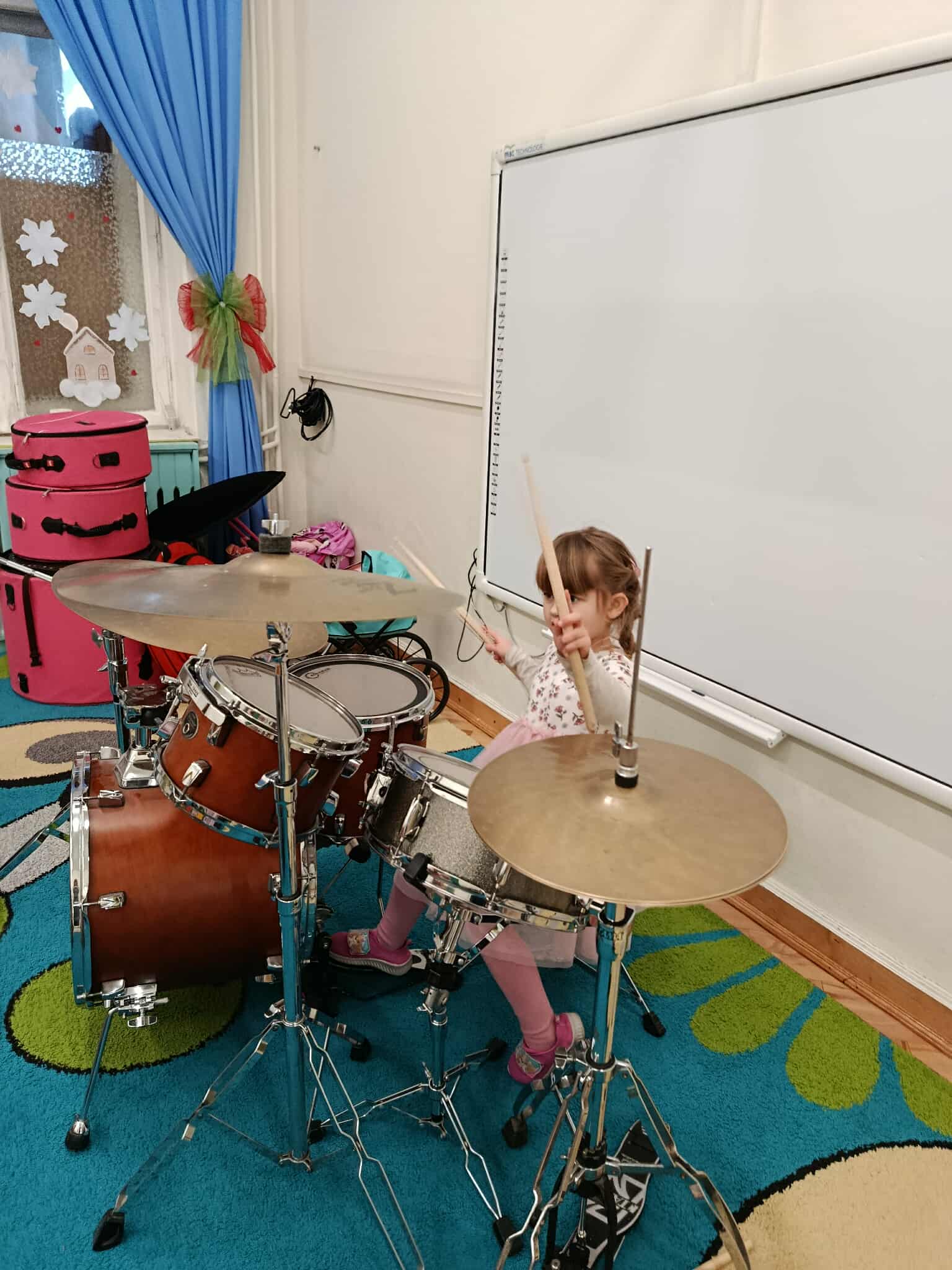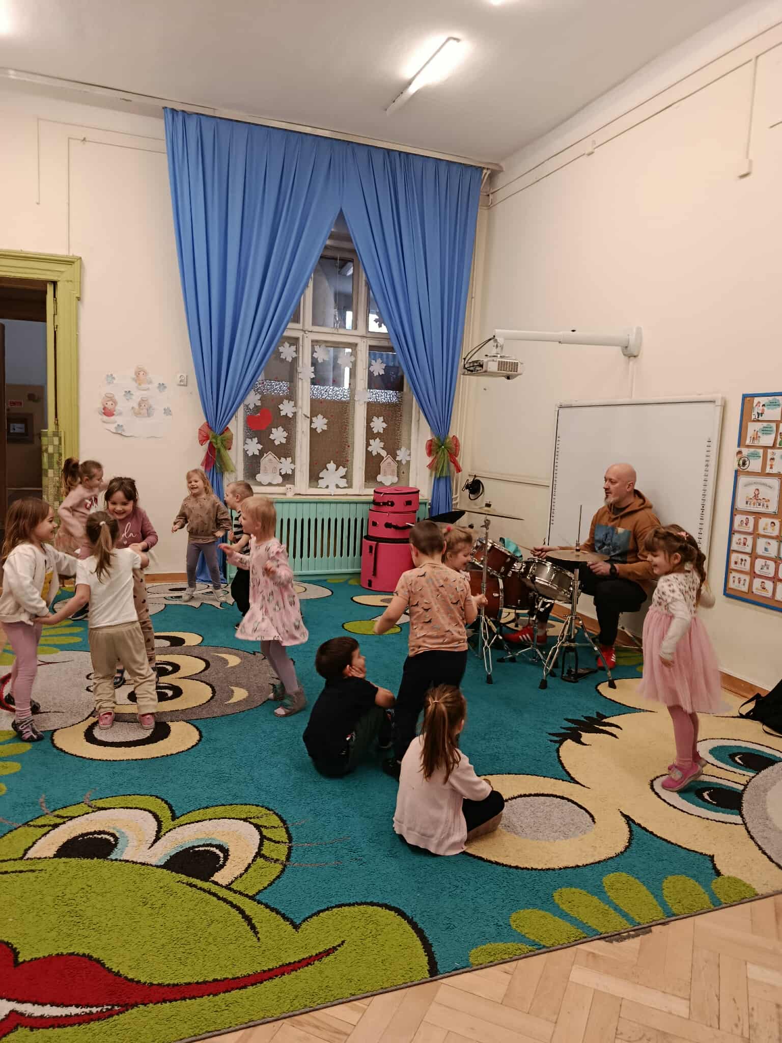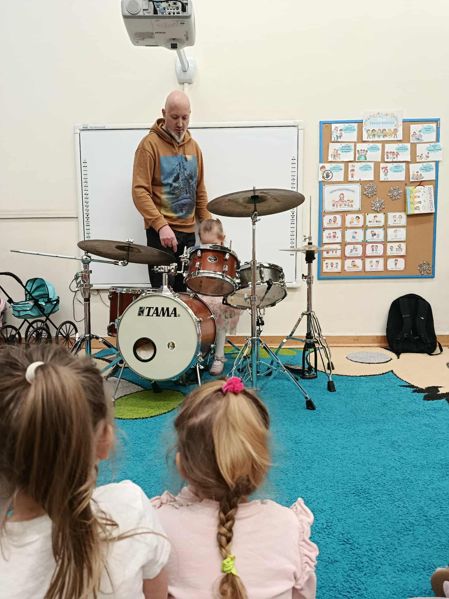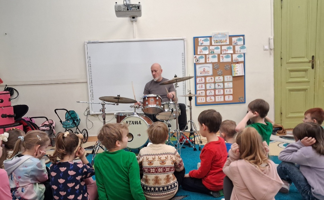 Miniony piątek był inny niż wszystkie. Nasze przedszkole odwiedził pan Marcin Lewicki ze szkoły "Drum School" i poprowadził niebanalne zajęcia dla przedszkolaków. Dzieci miały okazję poznać perkusję na żywo, posłuchać profesjonalnej gry a nawet spróbować samodzielnie swoich sił na tym instrumencie.