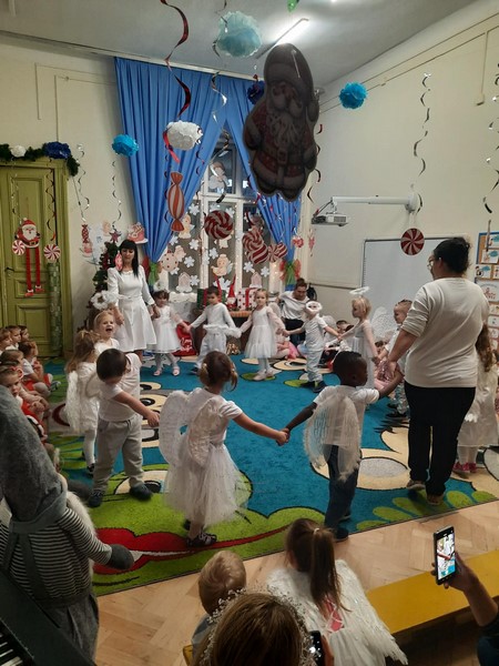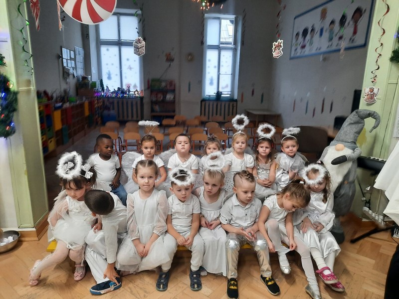 Z radością informujemy, że nasze przedszkolaki zaprezentowały wyjątkowe przedstawienie bożonarodzeniowe pt. „Zmartwienie Aniołków”. Była to nastrojowa, pełna ciepła i uśmiechu opowieść o małych aniołkach, które – jak to w życiu bywa – miały swoje troski, lecz dzięki dobroci, wzajemnej pomocy oraz świątecznej magii odnalazły radość, spokój i nadzieję. Spektakl wprowadził wszystkich w piękny, tradycyjny klimat Świąt, przypominając, jak ważne są serce, życzliwość i obecność drugiego człowieka. Występ dzieci dostarczył wielu wzruszeń oraz zachwycił swoją szczerością i urokiem.
